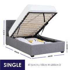 (SINGLE ) Milano Capri Luxury Gas Lift Bed Frame Base And Headboard With Storage All Sizes - Charcoal